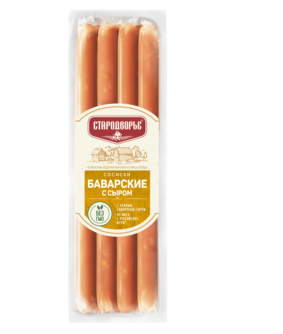 Сосиски Баварские с добавлением сыра обладают нежной текстурой и насыщенным вкусом с пикантными сырными нотами. Они полностью готовы к употреблению после непродолжительной термической обработки: их можно отварить, поджарить на сковороде или приготовить на гриле. Сосиски подходят для быстрого ужина, завтрака или как основа для хот-догов. Упаковка в газовой модифицированной среде весом 350 грамм сохраняет свежесть продукта. Благодаря удобному формату их легко порционировать и готовить необходимое количество.