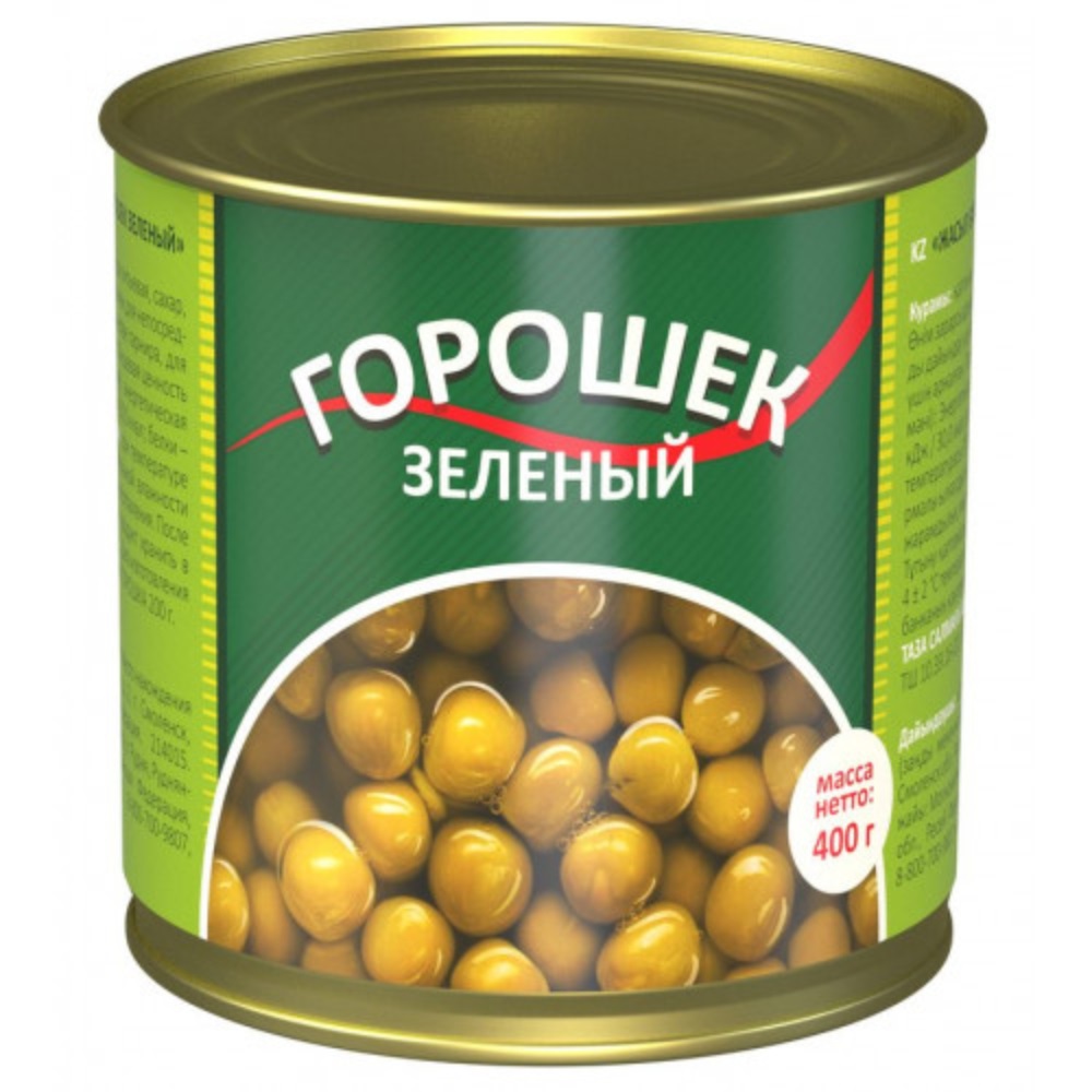 Зеленый горошек в жестяной банке обладает нежным сладковатым вкусом и упругой текстурой. Он полностью готов к употреблению и является универсальным ингредиентом для салатов (например, оливье), супов, гарниров к мясу и рыбе, а также самостоятельным овощным блюдом. Продукт сохраняет свой натуральный цвет и питательную ценность, являясь источником растительного белка и клетчатки. Банка удобна для хранения и легко открывается с помощью ключа.