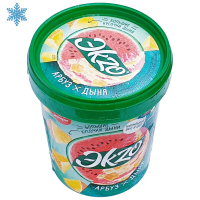 вода, сахар, кусочки дыни, молоко сухое, сироп глюкозы, концентрированный сок дыни, сыворотка сухая подсырная, мальтодекстрин, масло сливочное (B) или молочный жир (F), тыквенное пюре, стабилизаторы (Е1442,камедь рожкового дерева, гуаровая камедь, каррагинан) эмульгаторы (моно – и диглицериды жирных кислот), фруктоза, регулятор кислотности лимонная кислота, красители (кармин, каротин, аннато), концентрированный сок арбуза, ароматизаторы (дыня, арбуз), консервант E211